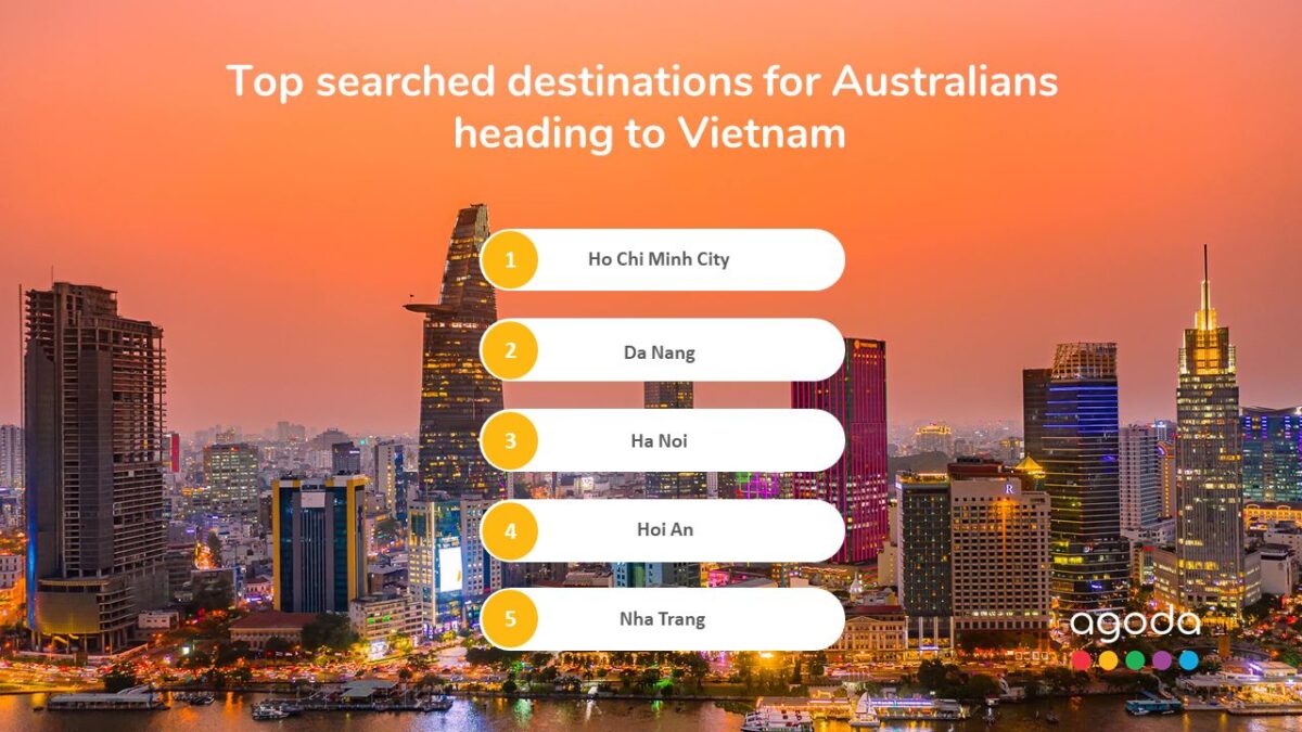 Going the other way, Agoda’s data indicates a 36% year-over-year increase in searches for accommodations by Vietnamese travelers to Australia. Vietnamese travelers are searching for hotels in: